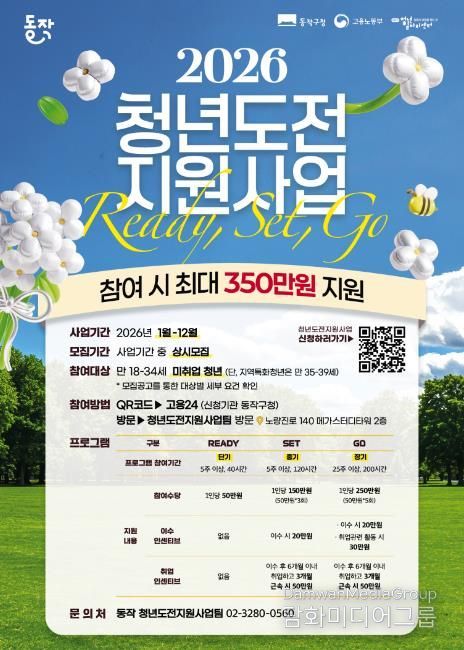 시민행정신문 강갑수 기자 | 동작구가 고용노동부 주관 공모사업인 '2026년 청년도전 지원사업'에 선정돼 참여자를 모집한다고 밝혔다.