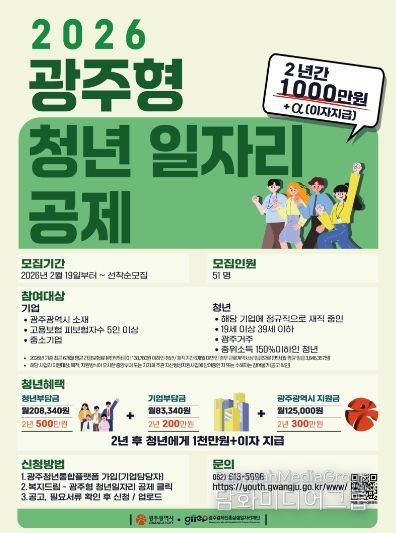 신청은 참여를 희망하는 기업이 청년 신청서 등을 포함해 ‘광주청년통합플랫폼'을 통해 접수하면 된다. 소득 요건 및 기업 요건 심사를 거쳐 대상자를 선정하고, 결과는 개별 통보할 예정이다.