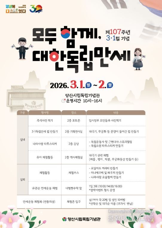 양산시 관계자는 “이번 행사는 가족이 함께 참여하며 3·1절의 역사적 의미를 자연스럽게 되새길 수 있도록 기획했다”며 “양산에도 독립을 위한 치열한 발걸음이 있었음을 시민들에게 알리고, 지역의 역사적 자긍심을 높이는 계기가 되길 바란다”고 밝혔다.