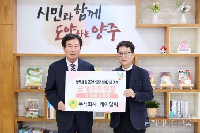 시민행정신문 강갑수 기자 | 주식회사 케이알씨(대표 오전식)는 최근 양주시희망장학재단(이사장 이진규)에 장학기금 1,000만 원을 기탁했다.