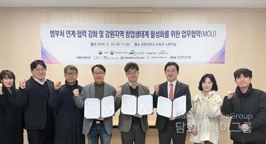 시민행정신문 이세훈 기자 | 강원도립대학교 라이즈(RISE) 사업단 로컬창업센터는 2월 19일 강원대학교 보듬관에서 강원대학교 KNU 창업혁신원, 강원대학교 라이즈(RISE) 사업단, 강릉원주대학교 라이즈(RISE) 사업단 등과 함께 범부처 연계·협력 강화 및 강원지역 창업생태계 활성화를 위한 업무협약(MOU)을 체결했다고 밝혔다.
