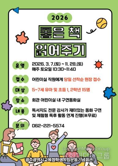 시민행정신문 기자 | 광주시교육청학생독립운동기념회관은 오는 3~11월 유아 및 초등학교 저학년 학생을 대상으로 독서 프로그램 ‘좋은 책 읽어주기’를 운영한다.