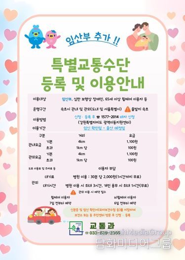 이병선 속초시장은 “임산부가 안심하고 이동할 수 있는 환경을 만드는 것이 곧 아이 낳고 키우기 좋은 도시로 가는 출발점”이라며 “앞으로도 출산과 양육 가정에 실질적인 도움이 되는 교통복지 정책을 확대해 나가겠다”고 말했다.