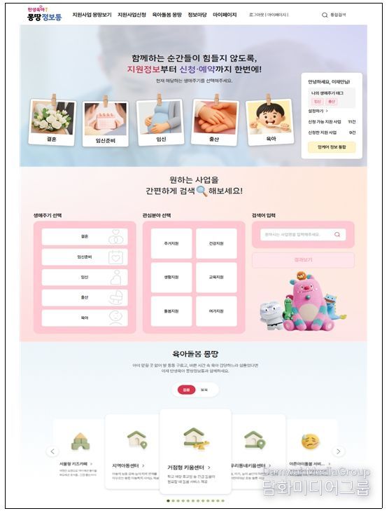「탄생육아 몽땅정보통」은 2023년 9월 오픈 이후 현재까지 누적 방문자 335만 명을 기록하고, 사업 신청을 통해 약 30만 명에게 혜택을 지원하며 예비 부모와 양육자에게 명실상부 필수 사이트로 자리매김했다.