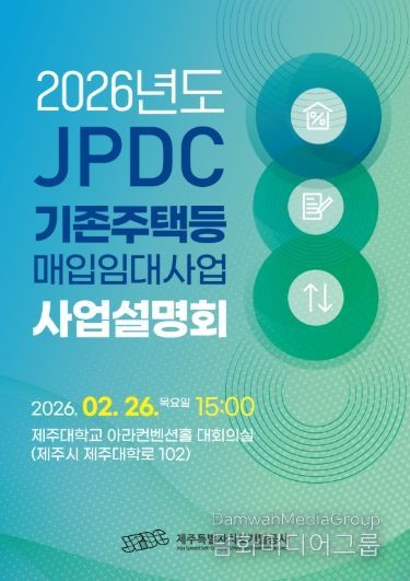 제주특별자치도개발공사(사장 백경훈)는 ‘2026년도 기존주택등 매입임대사업’의 원활한 추진과 참여 확대를 위해 오는 26일(목) 15시 제주대학교 아라컨벤션홀(제주시 제주대학로 102)에서 ‘2026년도 기존주택등 매입임대사업 사업설명회’를 개최한다고 밝혔다.