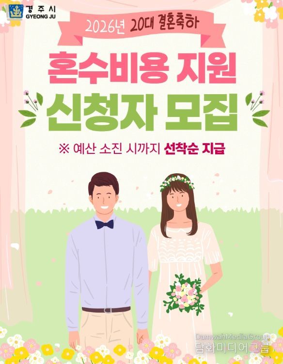 시민행정신문 기자 | 경주시는 청년층의 결혼 초기 경제적 부담을 완화하고 안정적인 가정 정착을 지원하기 위해 ‘2026년 20대 결혼 축하 혼수비용 지원사업’을 시행한다고 24일 밝혔다.