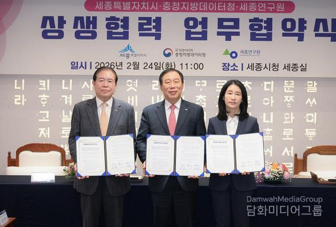 시민행정신문 강갑수 기자 | 세종특별자치시와 충청지방데이터청, 세종연구원이 24일 시청 세종실에서 데이터 기반 정책 수립 지원 등을 위한 상생협력 업무협약을 체결했다.
