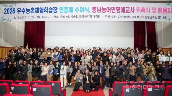 시민행정신문 기자 | 충남교육청은 24일 충청남도농업기술원(예산)에서 우수 농촌체험학습장 인증패 수여식 및 농어민명예교사 위촉식과 배움자리를 농촌체험학습장 대표, 충남농어민명예교사, 충남농업기술원 관계자 180명이 참석한 가운데 개최했다고 밝혔다.