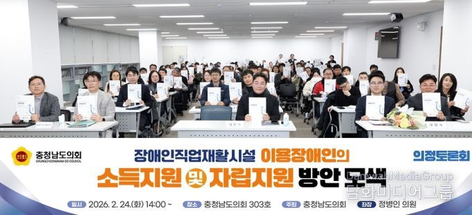 충남도의회는 지난 24일 충남도의회 회의실에서 ‘충청남도 장애인직업재활시설 이용장애인의 소득지원 및 자립지원 방안 모색을 위한 의정토론회’를 개최했다.