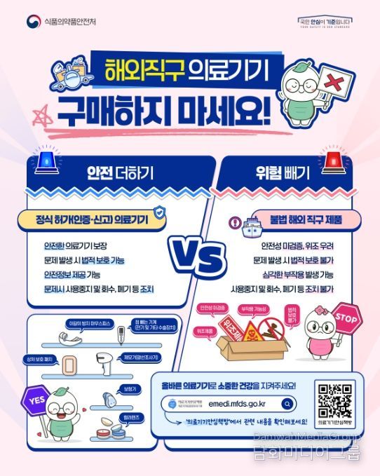 또한, 해외직구로 구매한 의료기기는 안전성과 유효성이 충분히 검증되지 않은 제품으로, 피해 발생 시 보상이나 법적 보호를 받기 어려울 수 있다. 따라서 의료기기 구매 시에는 식약처로부터 허가·인증·신고된 제품인지 확인해야 하며, 관련 정보는 의료기기안심책방 누리집에서 검색하여 확인할 수 있다.
