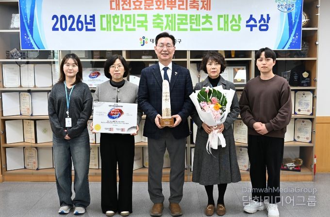 시민행정신문 강갑수 기자 | 대전 중구는 지난 24일 서울 피스앤파크 컨벤션센터에서 열린 2026년 제14회 대한민국 축제콘텐츠 대상 시상식에서 대전효문화뿌리축제가 축제 문화유산·역사 부문 대상을 수상했다고 밝혔다.