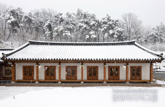 이날 오전부터 내리기 시작한 눈은 오후와 저녁까지 이어졌다. 전통 한옥 양식의 기와지붕과 마당, 주변 수목 위로 눈이 쌓이며 평소와 다른 모습이 연출됐다. 검은 기와 위에 쌓인 눈은 건물의 곡선을 더욱 또렷하게 드러냈다.
