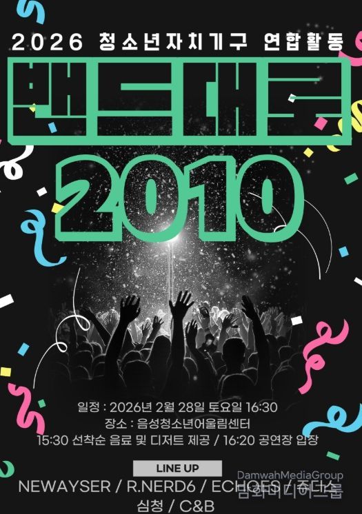 시민행정신문 강갑수 기자 | 음성군은 이달 28일 음성청소년어울림센터에서 2026년 청소년자치기구 연합활동 ‘밴드대로 2010’을 개최한다고 밝혔다.