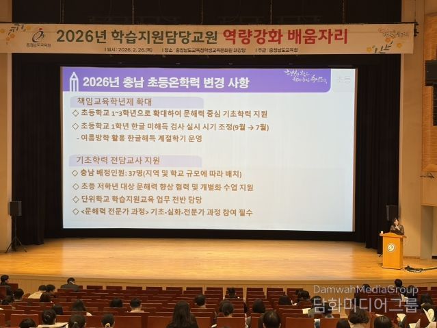 시민행정신문 기자 | 충남교육청은 26일 충남교육청학생교육문화원(천안)에서 2026년 학습 지원 담당 교원 410명과 14개 시군 교육지원청 기초학력 담당 장학사를 대상으로 배움자리를 개최했다.