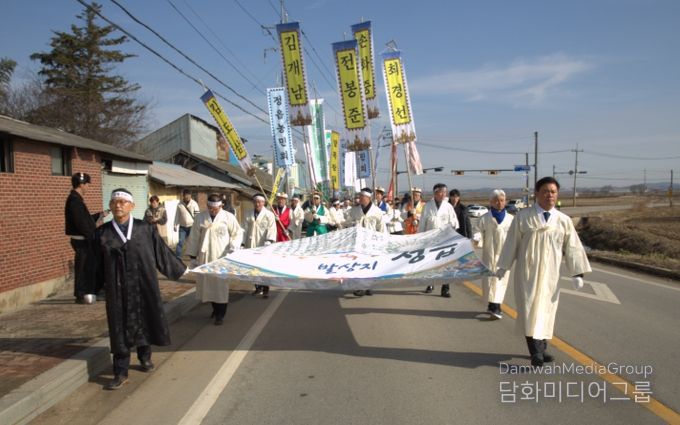 이평면 예동마을에서 출발해 말목장터로 향하는 대열은 1894년 당시의 긴장감과 결기를 실감나게 재현했다. 말목장터에 도착한 대열이 격문을 낭독하자, 현장을 지켜보던 관람객들 사이에서 박수와 환호가 터져 나왔다.