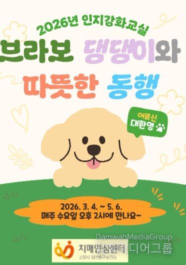 시민행정신문 기자 | 고양특례시 일산동구보건소 치매안심센터는 중앙치매센터에서 개발한 ‘BRABO’ 인지훈련 프로그램과 동물교감치료를 적용한 ‘브라보 댕댕이와 따뜻한 동행’ 프로그램의 참가자를 모집한다고 26일 밝혔다.