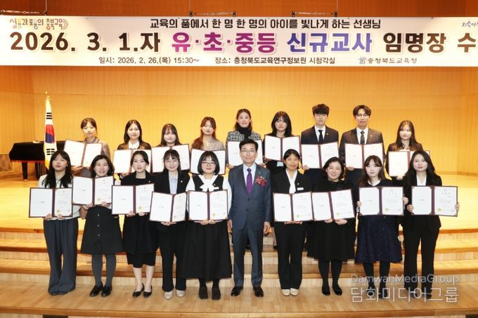 시민행정신문 기자 | 충청북도교육청은 26일 오후, 교육연구정보원 시청각실에서 2026. 3. 1.자 유·초·중등·특수·비교과 신규교사 296명에게 임명장을 수여했다.