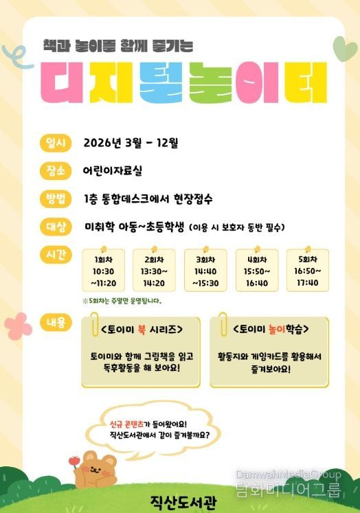 직산도서관 관계자는 “디지털 놀이터를 통해 어린이들이 상상력과 창의력을 키우고, 독서에 흥미를 갖게 되길 바란다”고 말했다.