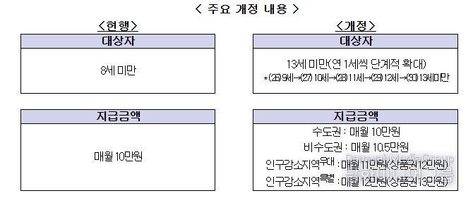 1. 아동수당 지급 대상 확대