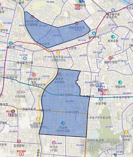 이번 수계 조정으로 동구 신암 2동, 수성구 수성 1·2·3·4가동 전역, 그리고 동구 신암3동, 북구 대현동, 수성구 범어 1·3동, 중동, 황금 2동 일부 지역 3만 3천 세대에서 흐린 물이 나올 수 있다.