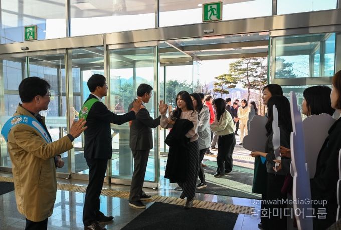 지난 3일 청양문예회관에서 열린 이날 행사에는 군수와 각 부서장들이 직접 참여해 입장하는 직원들과 하이파이브를 나누며 서로 손을 맞대는 상징적 퍼포먼스를 통해 일상 속 청렴 실천 의지를 다졌다.