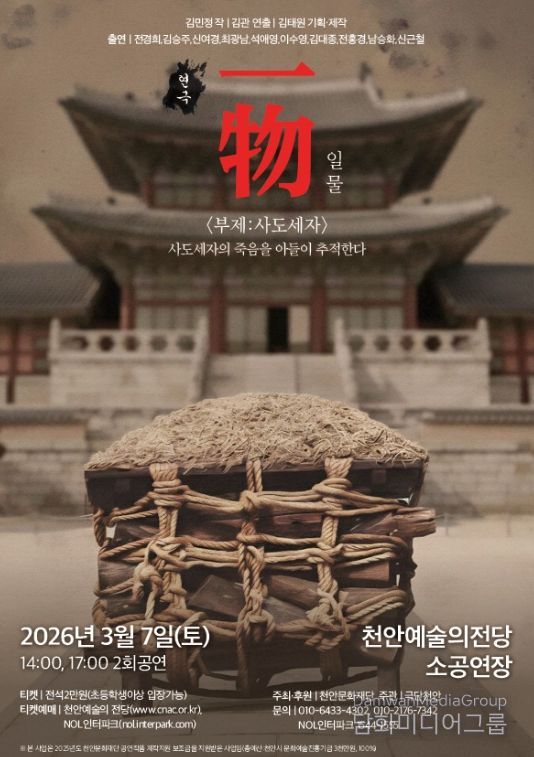 시민행정신문 강갑수 기자 | (재)천안문화재단은 오는 7일 재공연지원사업 선정작인 ‘一物(일물) 부제 : 사도세자’를 선보인다고 4일 밝혔다.