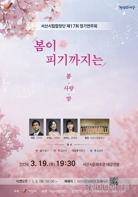 공연 좌석은 전석 무료며, 좌석 예매는 오는 3월 9일 오전 10시부터 서산시 문화회관 누리집을 통해 할 수 있다.