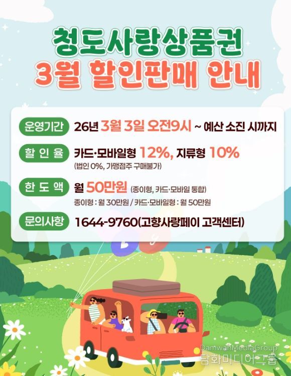 청도군은 예산 범위 내에서 할인 혜택을 적용할 예정이며, 월 구매 한도(월 50만원, 단 지류형 30만원) 등 세부 사항은 기존과 동일하게 운영한다.