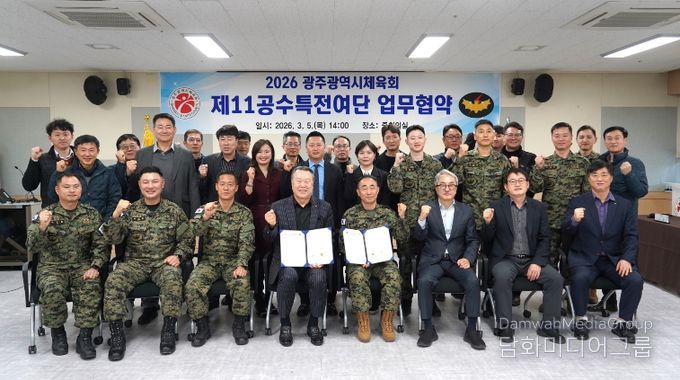 시민행정신문 강갑수 기자 | 광주광역시체육회(회장 전갑수)는 5일 14시 체육회관 2층 중회의실에서 육군특수전사령부 황금박쥐부대(여단장 조웅)과 업무협약을 체결했다고 밝혔다.