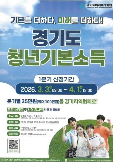 시민행정신문 강갑수 기자 | 오산시는 24세 청년에게 분기별 25만 원을 지급하는 ‘청년기본소득’ 2026년 1분기 신청을 3월 3일부터 4월 1일까지 접수한다고 밝혔다.