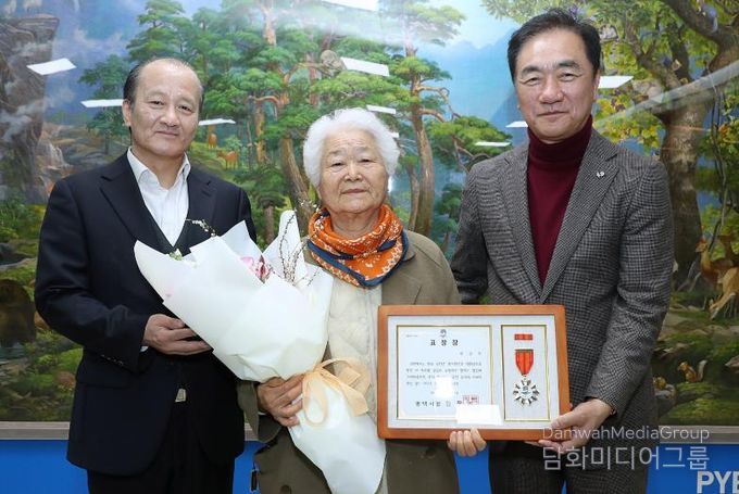 지난 5일 오전 평택시청 대외협력실에서 열린 수여식에는 정장선 평택시장을 비롯해 교육국장, 국제대학교 총장 등 관계자들이 참석해 이군자 어르신의 공로를 축하하고 환담을 나눴다.