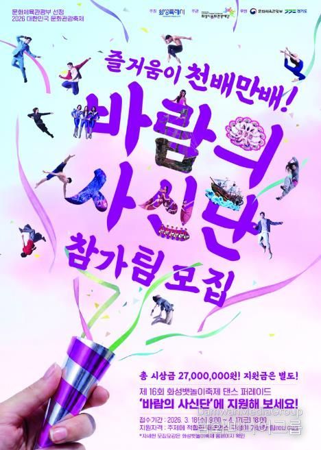 시민행정신문 강갑수 기자 | (재)화성시문화관광재단은 제16회 화성 뱃놀이 축제의 주인공이 될 ‘바람의 사신단 댄스 퍼레이드‘경연 참가팀을 모집한다.