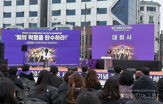 전남여성인권단체연합(회장 김수아)이 주최한 이날 행사에는 ‘빛의 혁명을 완수하라! 성평등이 민주주의의 완성이다’라는 주제로 지역 9개 민간단체 대표와 여성인권단체연합 회원 등 150여 명이 참석했다.