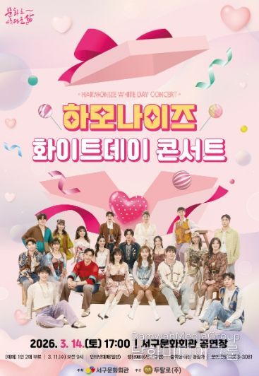 시민행정신문 기자 | 서구문화회관은 3월 14일 오후 7시 서구문화회관 공연장에서 목소리로 세상에 희망과 기쁨을 전하는 대한민국 대표 쇼콰이어그룹 하모나이즈를 초청해'화이트데이 콘서트'를 개최한다.