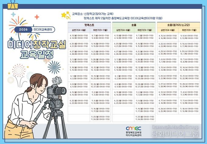시민행정신문 기자 | 충청북도교육청 직속기관 교육연구정보원 미디어교육센터는 학생들의 미디어 제작 경험을 확대하고 지역 간 미디어 교육 격차를 완화하기 위해 '2026. 미디어교육 창작교실'을 운영한다고 밝혔다.