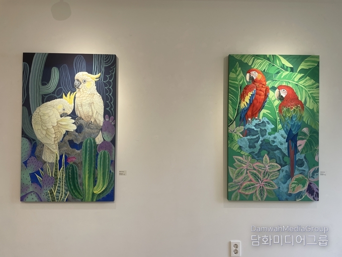 꽃은 계절의 기운을 머금은 채 화면에 자리하고, 새는 그 사이를 오가며 잠시 머문다. 이러한 움직임은 고정되지 않는 시간과 닮아 있으며, 각각의 장면들은 하나의 풍경으로 이어진다. 화려한 설명 대신 색의 밀도와 선의 호흡, 그리고 여백을 통해 관람자가 스스로 머무를 수 있는 공간을 남기고 있다.