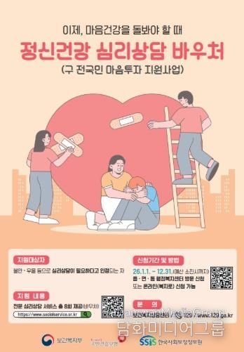 이 사업은 심리상담이 필요하다고 인정되는 시민을 대상으로 맞춤형 마음 돌봄 서비스를 제공하기 위해 마련됐다.