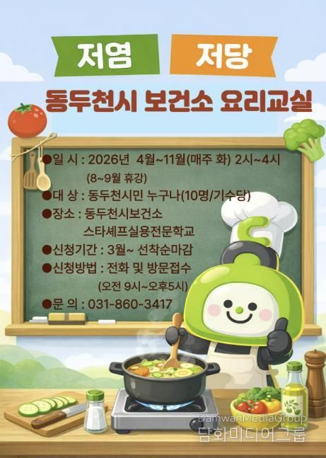시민행정신문 기자 | 동두천시보건소는 2026년 만성질환 관리 및 예방을 위한 ‘저염·저당 식단 요리 프로그램’ 참여자 60명(매월 10명씩)을 선착순 모집한다고 밝혔다.