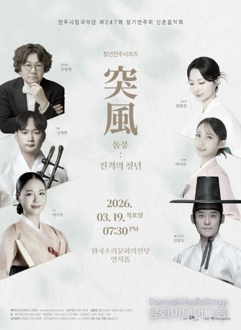 시민행정신문 강갑수 기자 | 전주시립국악단은 오는 19일 오후 7시 30분, 한국소리문화의전당 연지홀에서 정기연주회 ‘돌풍, 진격의 청년’을 개최한다.
