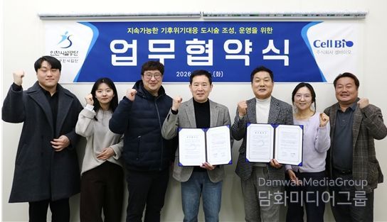 시민행정신문 김학영 기자 | 인천시설공단 청라공원사업단이 지난 10일, 한국서부발전 사내벤처 ㈜셀바이오(대표이사 변형완)와 함께 업무협약을 체결하고 민관 협력을 통한 도시숲 조성과 공원 관리 효율화에 나선다.