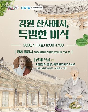 시민행정신문 강갑수 기자 | 강원관광재단은 4월 11일, 평창 월정사에서 개최되는 ‘강원 산사에서 특별한 미식’ 행사가 지난 3월 9일 모집 시작과 동시에 전석 매진됐다고 밝혔다.