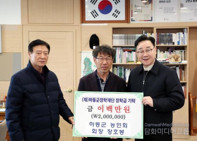 (재)하동군장학재단은 지난 10일 장호봉 회장이 군수 집무실을 찾아 지역 학생들을 위한 장학기금 200만 원을 전달했다고 밝혔다.