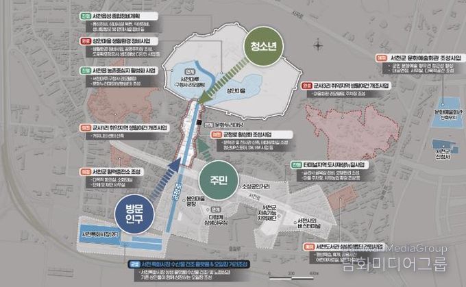 주요 내용으로는 ▲서천 문학관 및 전시관 신축 ▲테마문화길 조성 및 문화길잡이 양성 ▲청년 UP스토어 조성 및 상권 기획자 육성 등 하드웨어와 소프트웨어가 결합된 다각적인 활성화 사업이 포함되어 있다.