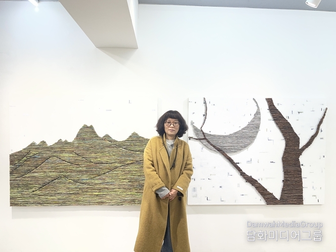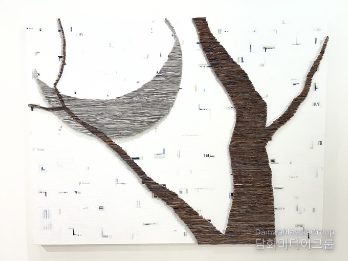 작가는 한지를 직접 염색하고 채색한 뒤, 다시 잘라내어 캔버스위에 한 겹씩 쌓고, 쌓는다. 이 과정을 통해 이미지가 드러난다. 겹을 쌓는 행위 속에는 시간을 담아내고 있으며 층층이 쌓인 겹의 누적은 화면 속에 두 개의 공간을 만들어 낸다. 쌓고 채워진 겹의 사이의 공간과 채워지고 비워진 화면의 공간, 두 공간은 시간과 공간을 함께 보여주게 된다.