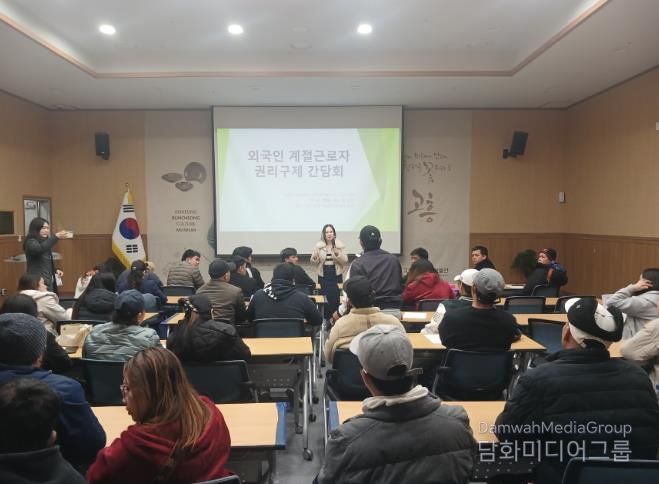 시민행정신문 강갑수 기자 | 고흥군은 지난 12일 고흥분청문화박물관 강당에서 관내 외국인 계절근로자의 인권 보호와 실질적인 권리구제를 위해 ‘외국인 계절근로자 권리구제 간담회’를 개최했다고 밝혔다.