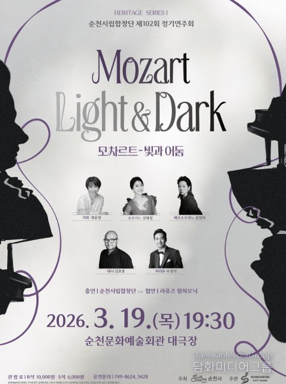 시민행정신문 강갑수 기자 | 순천시는 오는 19일 저녁 7시 30분, 순천문화예술회관 대극장에서 순천시립합창단 제102회 정기연주회 ‘모차르트의 빛과 어둠’을 개최한다고 밝혔다.
