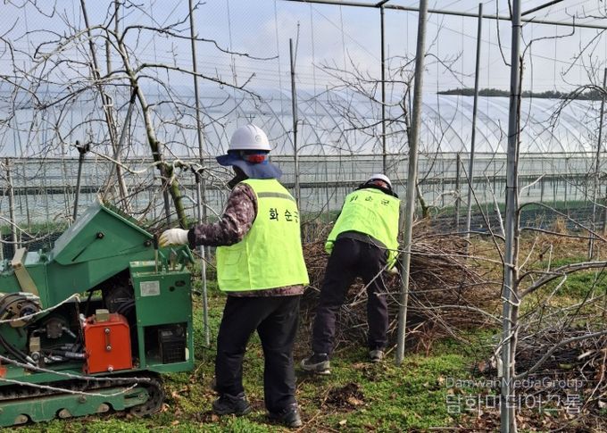 화순군농업기술센터는 지난 1월 영농부산물 파쇄 지원을 신청·접수하고, 2월 12일부터 파쇄지원단을 운영 중이다. 그 결과 3월 11일 기준 31개소 8.8ha 규모의 영농부산물을 파쇄 처리했다.