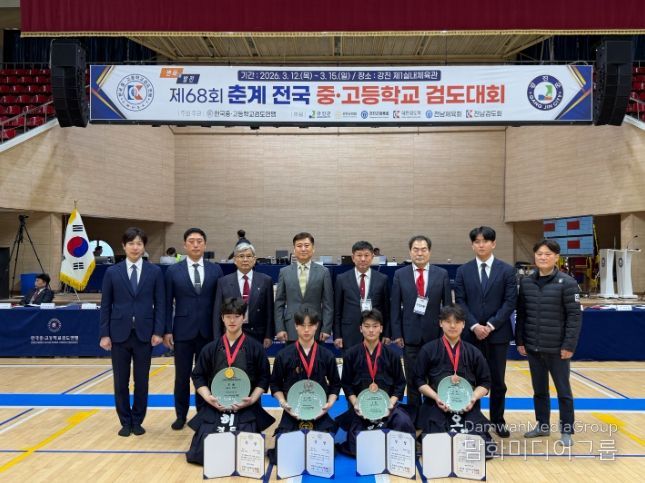 시민행정신문 장규호 기자 | 지난 3월 12일부터 15일까지 전남 강진 제1실내체육관에서 열린 ‘제68회 춘계 전국중·고등학교 검도대회’에서 광주서석중학교 허경도 선수가 남자중등부 개인전 우승을 차지했다. 또한 여자중등부 단체전에서는 용봉중학교가 정상에 오르며 광주 지역 검도의 저력을 과시했다.