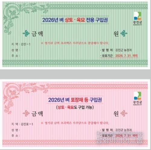 군은 농가별 영농 형태가 다르다는 점에 착안해 ‘상토·육묘 전용 구입권’과 ‘벼 포장재 구입권’ 2종으로 나너 발행했다.