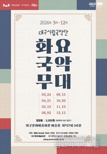 시민행정신문 강갑수 기자 | 대구시립국악단은 3월부터 12월까지 총 8회에 걸쳐 대구문화예술회관 비슬홀에서 ‘화요국악무대’를 개최한다.